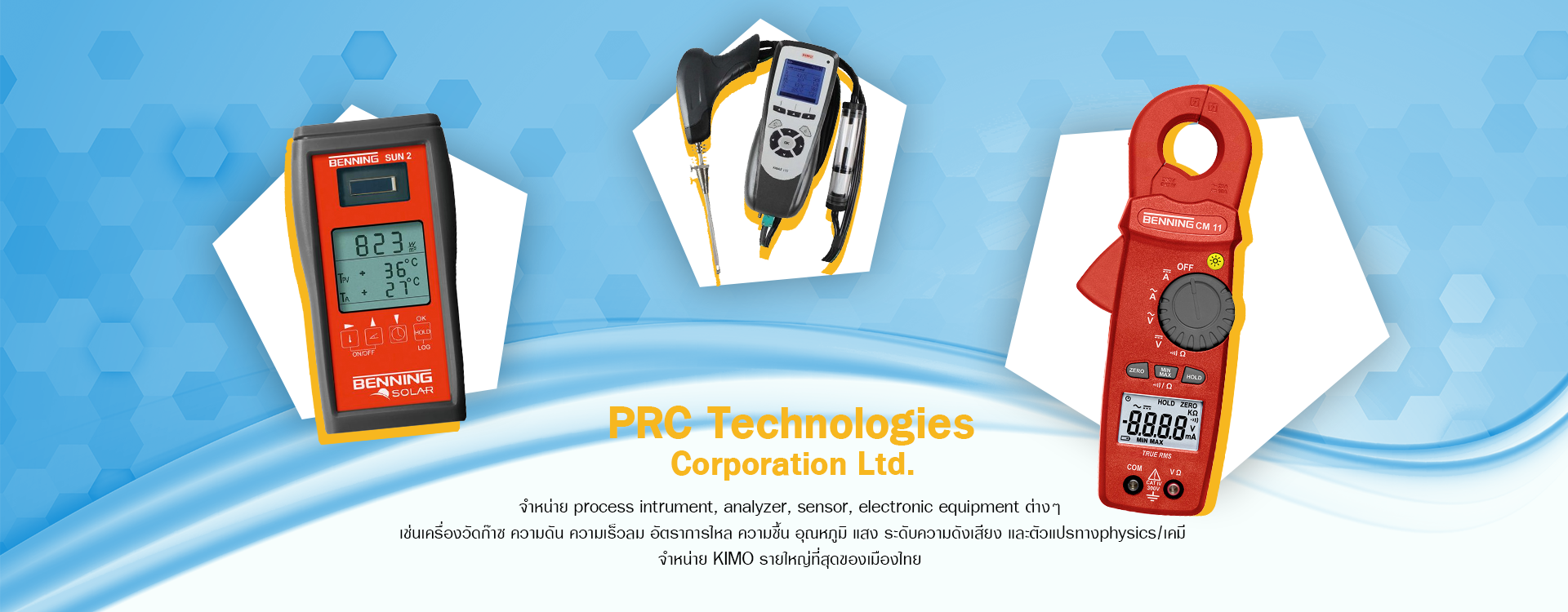 จำหน่าย process intrument, analyzer, sensor, electronic equipment ต่างๆ เช่นเครื่องวัดก๊าซ ความดัน ความเร็วลม อัตราการไหล ความชื้น อุณหภูมิ แสง ระดับความดังเสียง และตัวแปรทาง physics/เคมี จำหน่าย KIMO รายใหญ่ที่สุดของเมืองไทย สินค้ามี Calibration Certificate รับรองความเที่ยงตรงของเครื่องมือวัดตามมาตรฐานของ AFNOR รับประกันสินค้า 1-2 ปี หากเสียภายใน 7 วัน เปลี่ยนสินค้าตัวใหม่ทันที บริการจัดส่งทั่วประเทศ รวดเร็วทันใจ